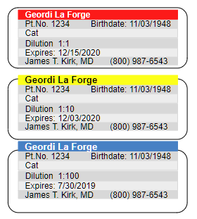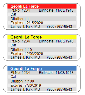 | Enter vial mixture names | Set label colors for each dilution | |||||